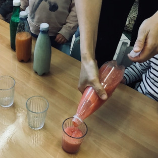 We started out by setting up a small table with 4 colourful smoothies and the whole foods that went into them. We used coconut water as the liquid because we wanted to keep the colours as vibrant as possible and milk tends to dilute the colours a little.